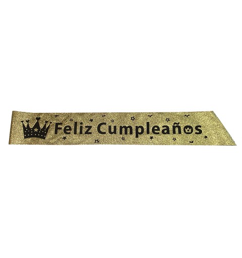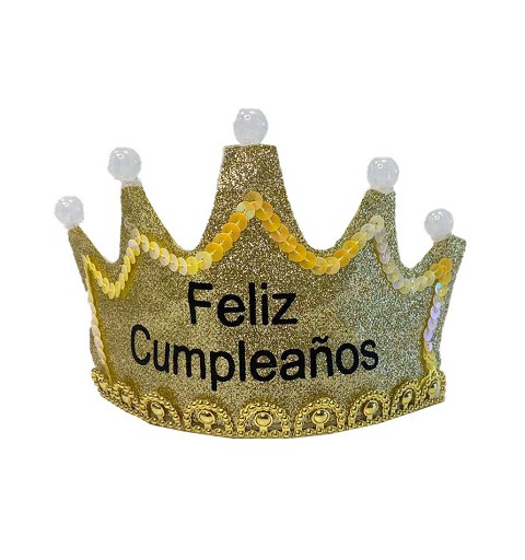 Ideal para sorprender al cumpleañero, o cumpleañera en su próxima celebración, te presentamos este set, compuesto por banda, toda de purpurina dorada, a juego con la corona, que además, lleva luz incorporada, perfecto para sorprender al o la protagonista en su gran día...