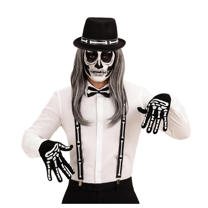 Divertido y espeluznante Set de Esqueleto para Adulto, compuesto por guantes, tirantes y pajarita, ideal para complementar disfraces de Halloween o fiestas temáticas. Cada pieza presenta un diseño de huesos que destac por su realismo, aportando un toque macabro y llamativo al conjunto. Ligero y fácil de llevar, este accesorio permite movilidad total y completa cualquier caracterización, convirtiéndote en el centro de atención con un look aterrador y divertido a la vez.....