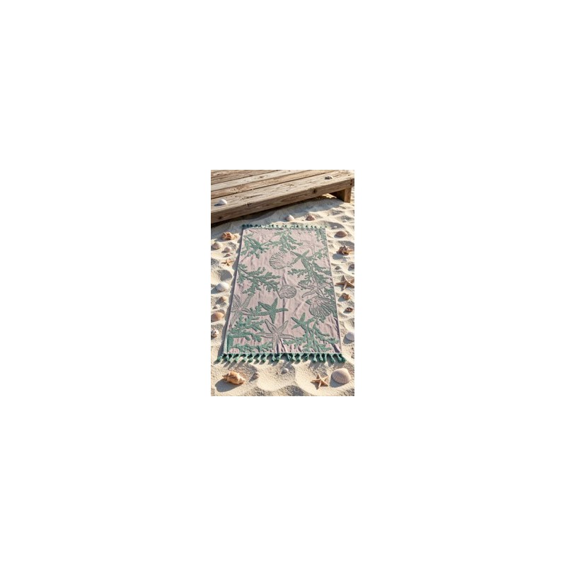 • Toalla Pareo Egipcio Conchas Ramas Coral-Verde