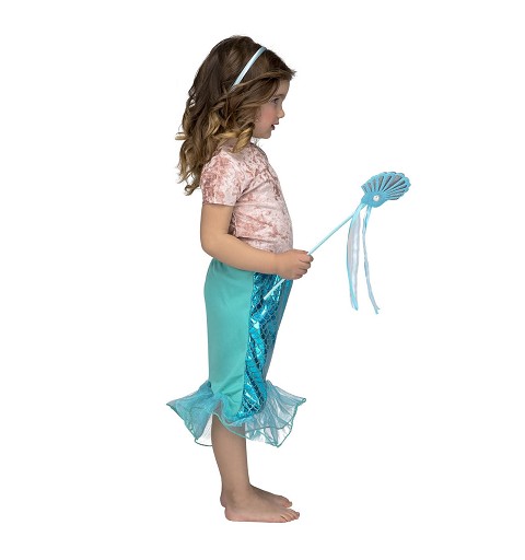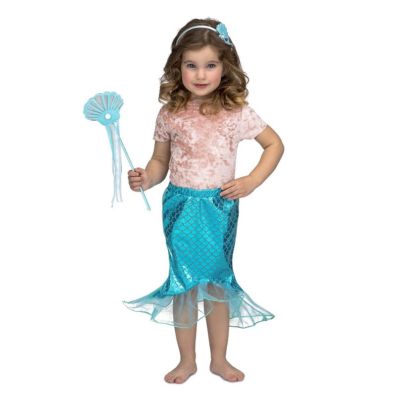 Compuesto por una falda, que imita la cola de una bella sirena, a juego con la varita y la diadema, tenemos este disfraz de sirenita azul, para niñas de 3 a 6 años, y con el que cualquier pequeña imaginara vivir alguna divertida y animada aventura en el fondo del mar.