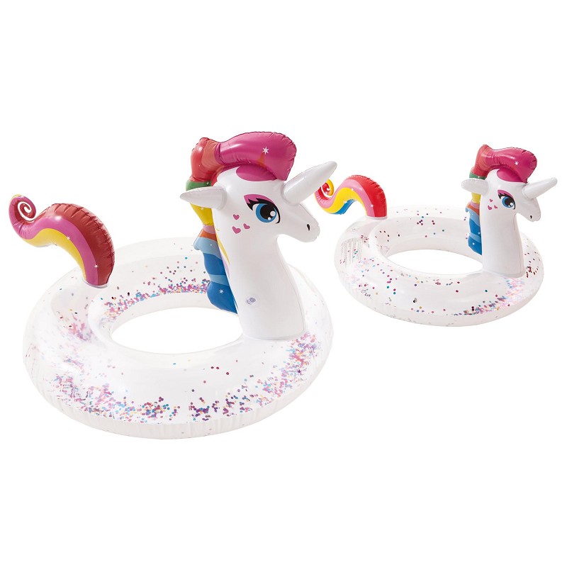 En tres tamaños distintos, 55, 85 y 115 centimetros, podrás encontrar a este alegre y divertido unicornio hinchable, que lleva purpurina en su interior, un detalle que sin duda, llamará la atención tanto de grandes como de pequeños!!