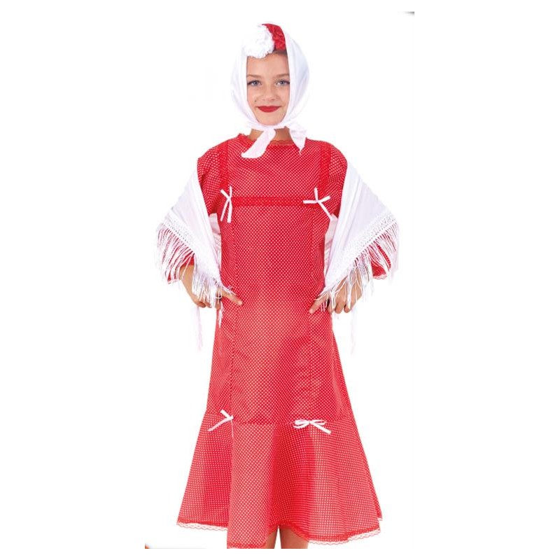 Lista para bailar un chotis en la esperada verbena es como quedará tu pequeña con este elegante Vestido de Chulapa Roja para Niña, que incluye también el pañuelo, y que está disponible en varias tallas, de 6 a 12 meses, de 1 a 2 años, de 3 a 4 y de 5 a 6, ideal para disfrutar de la próximas fiestas de San Isidro...