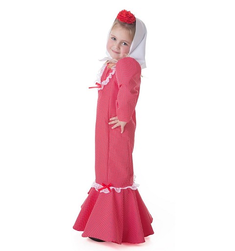 Si te estás preparando para las próximas fiestas de San Isidro, y estás buscando el modelito perfecto para tu pequeña, te presentamos este preciosísimo Vestido de Chulapa Roja para niña, un clásico entre los clásicos, que incluye, como no, el pañuelo para la cabeza, y que está disponible en varias tallas, que van desde los 2 hasta los 13 años, y con el que se sentriá como una auténtica castiza....